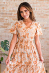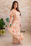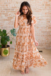 Elegance at its best! The darling new Eden dress has got our attention and we are sure it will have yours too! Soft V-neckline, gorgeous short flutter sleeves, a flowy ruffle tier maxi skirt, what more can we say?! This beautiful floral print has stolen our hearts! This dress is also fully lined except for those lovely flutter sleeves and has a shirred elastic waistband.