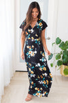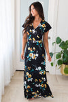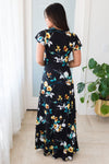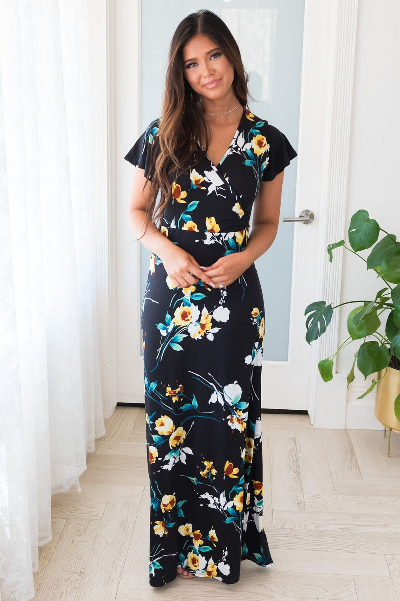 The Karey Modest Maxi Dress is absolutely stunning! This dress is the most beautiful black floral print features a crossover v-neckline and a string tied waist. All of these details together create a magnificent modest and trendy design!