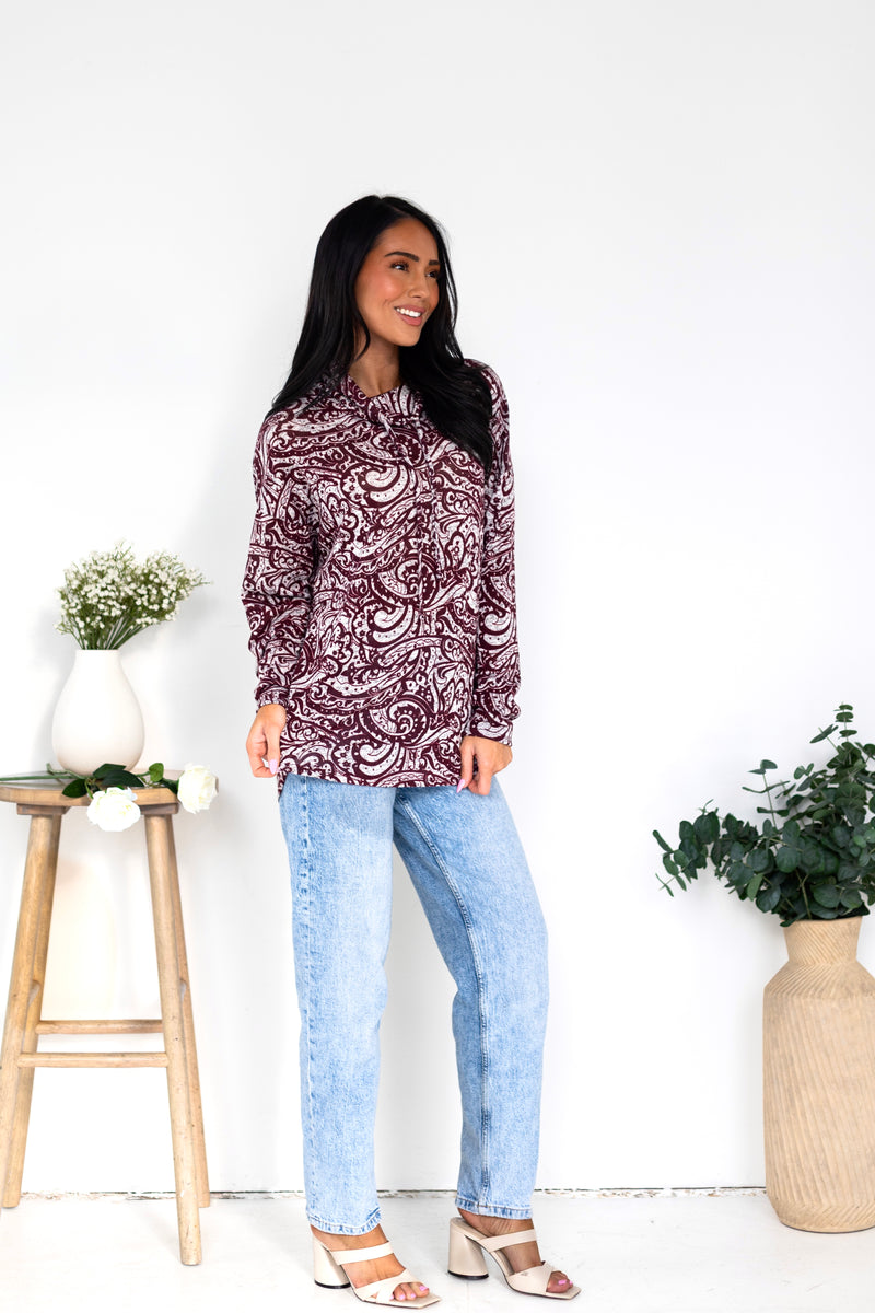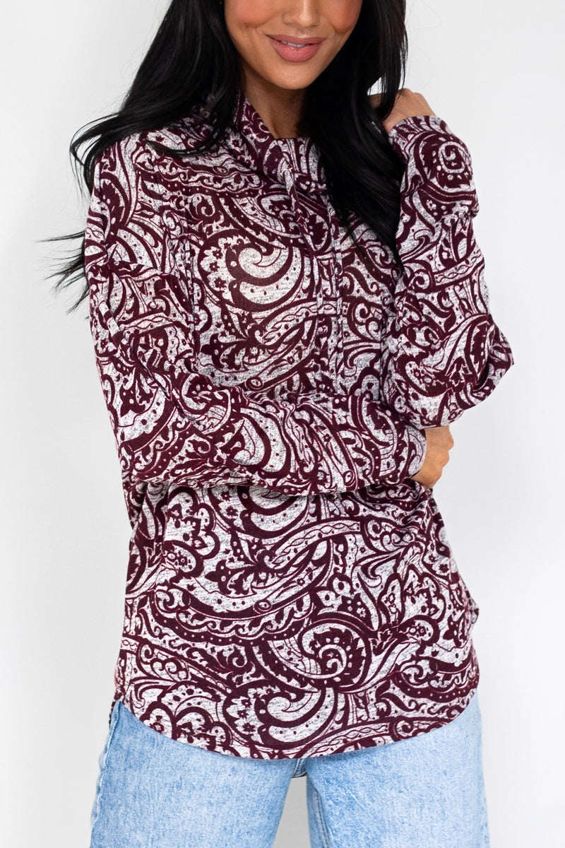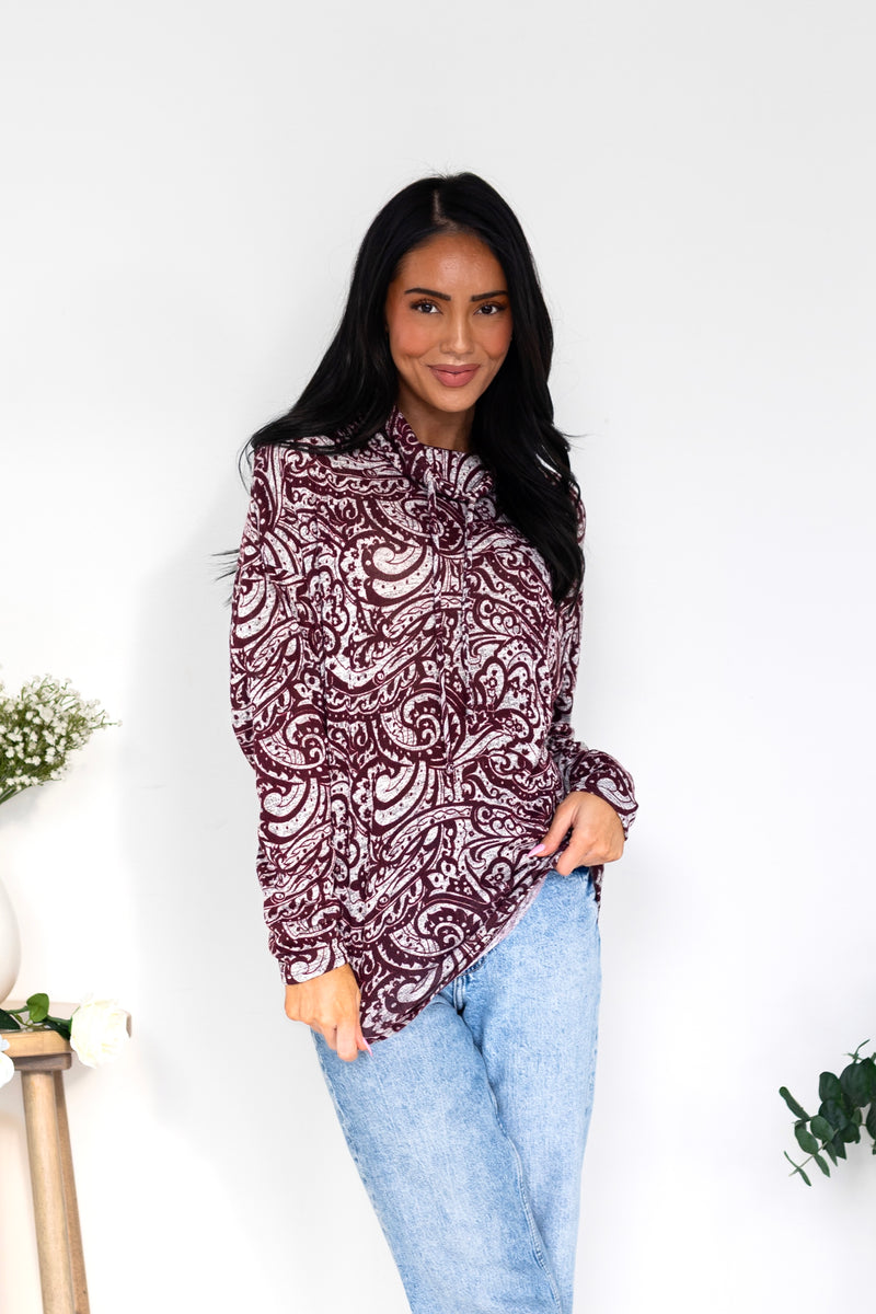 Ready for your new favorite top?! Featuring long sleeves, classy paisley printed fabric, long sleeves and a cozy cowl neckline. We do not want you to miss out so hurry and get yours today!