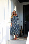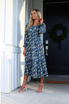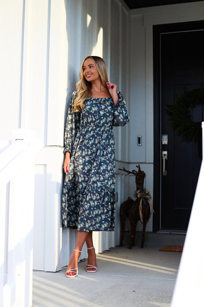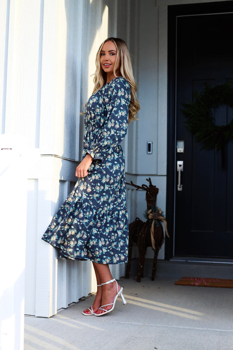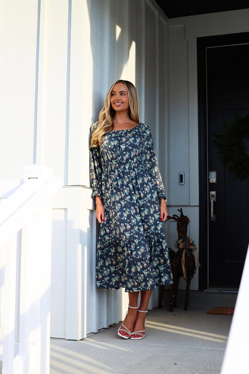 The dreamiest of dresses has just arrived! The floral Mina is the perfect dress for any season! Features include, quarter length sleeves, modest round neckline with a flattering elastic waistline and the perfect length flowy ruffle hem skirt. Get yours before they are gone!