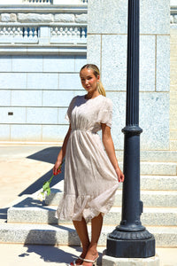 The Shana simply had us smiling from the second we spotted this beauty! This lovely floral chiffon dress is your next wardrobe must have! Features, soft flowy material, rounded neckline, short flutter sleeves, elastic waist and a full flowy maxi length skirt! Get yours today!