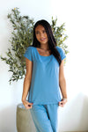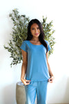 You can do anything in a lounge top that is this classy and cozy! We all love relaxing on the Friday nights, now you can do it in style! This top features a lovely blue grey color and short cuffed sleeves. Pair this with our must have Friday Nights In lounge pants for the perfect classy combination!