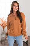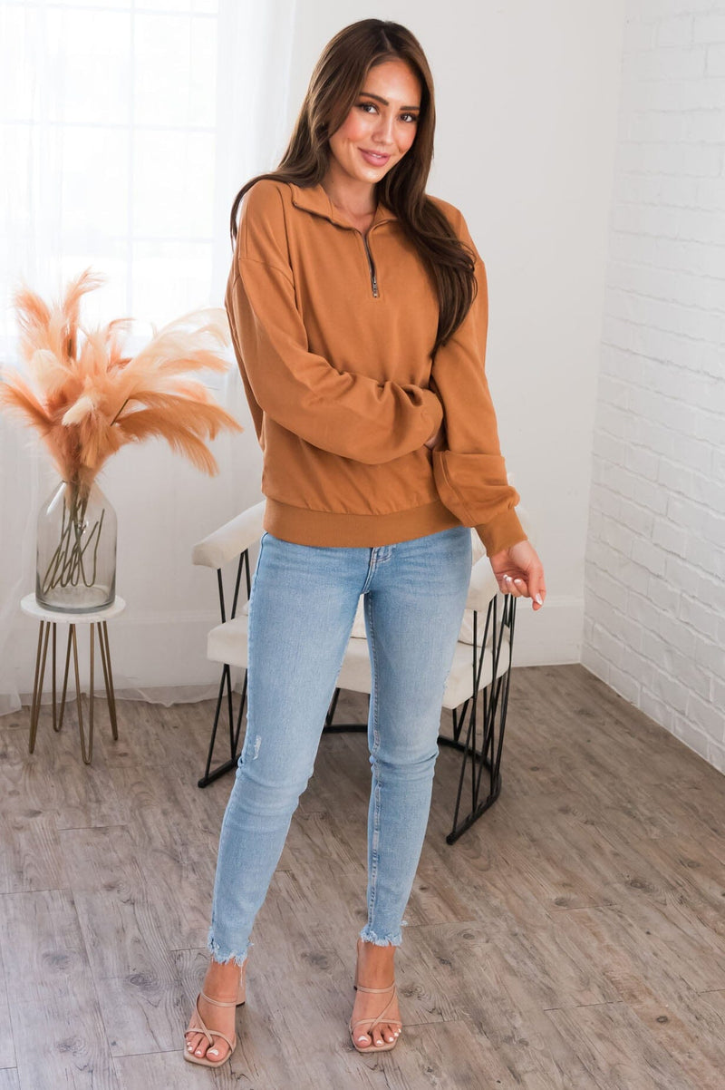 Sweater season has arrived and we are obsessing over this new pullover! Loving the camel color and comfy fit, most definitely a must have this season! Pullover features include, french terry fabric & a functional half zipper at the neck. Get yours today before they are all gone!