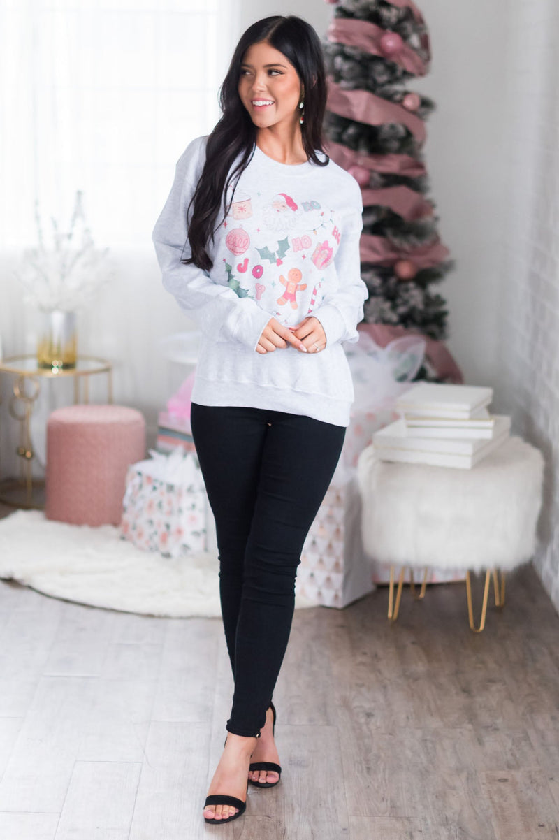 All we want for Christmas is a cute cozy new sweater! We know you do too! This sweater features long sleeves, perfect true to size fit and the cutest all things that make a classic Christmas Graphic design! Get yours now and fall in love today!Details: