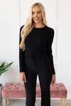 The new A Step Ahead ribbed top will add some class and fun to your closet! This crop style top has all the most amazing features and is the perfect pair for your high waisted pants and skirts! Featuring feminine pleated shoulders, long sleeves, exposed seam backing and the perfect black color. This one is perfection and the must have pairing to every outfit!