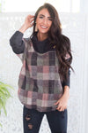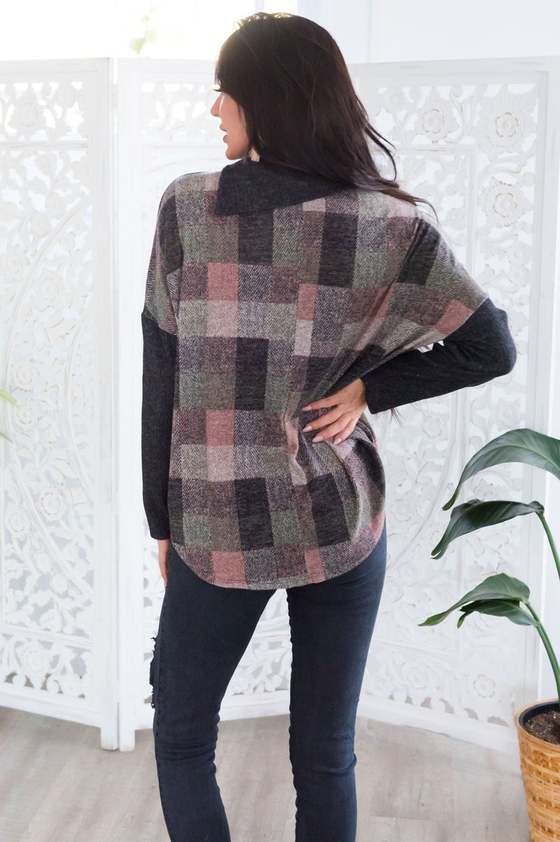 We couldn't wait to bring you the cutest & coziest modest sweaters! The stroll in the park sweater definitely fills that role! Featuring a lovely mauve, grey, & sage plaid print, long sleeves and a cowl neckline with precious button detailing.