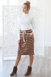 The most fashion forward, flattering skirt is here and ready to be yours! We love skirts so much because you can dress them up or dress them down all while looking fabulous! Make sure you grab one now to add it to your Fall wardrobe! Featuring a comfortable ribbed material, elastic waist with ribbon tie and pockets.