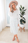 This delicate midi skirt is bound to be the perfect pairing with all your spring & summer blouses! Featuring an elastic waistband, a gorgeous ivory color, and light clover green leaf print throughout! This beauty is a must have indeed, grab yours soon!
