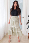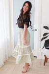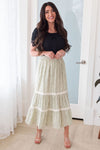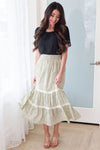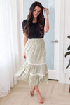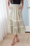 This darling boho inspired tiered skirt is going to be your summer go to! We love the darling sage and ivory print, crochet lace detailing, elastic waistband and super functional pockets. Get yours today!