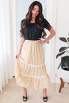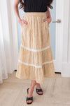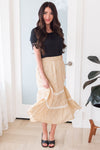 This darling boho inspired tiered skirt is going to be your summer go to! We love the darling mustard and ivory print, crochet lace detailing, elastic waistband and super functional pockets. Get yours today!