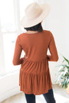 This delicate tiered top checks all the boxes! The darling ribbed material pairs perfectly with the flowy tiered bodice and long sleeves! This top is perfect all along or layer for even more modest style! You'll be gorgeous however you wear it!