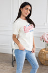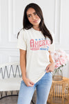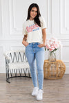 We've got your new favorite tee! Featuring unbelievably soft material, the cutest America The Beautiful graphic and short sleeves. This is your new modest feminine t-shirt go to! Get yours today!