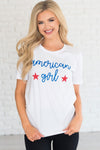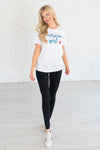 This cute tee is calling your name for all of your 4th of July festivities! Patriotic, fun and cute as can be. This comfy tee can be tucked in or tied in a side knot to add your own style to it. We can't wait to see you in this on the 4th of July this year!