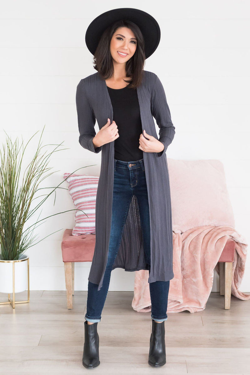 Our Autumn Joy Cardigan is so darling! This cardigan has the most amazing features, such as the super soft knit fabric, long sleeves, ribbed detailing, and beautiful charcoal grey color! This sweater is perfect for any fall outfit, make sure to get yours soon!