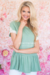 A top everyone will love has just hit the website and we are super stoked! This top features a round neckline, crochet sleeves, gorgeous peplum bottom and the softest material ever you will never complain about this one being uncomfortable!