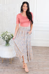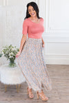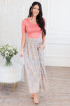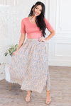 We are seriously in love with this darling feminine floral skirt! It is the perfect modest length, has super cute button front detailing, and a perfectly flattering fit with it's elastic waistline. Get yours today!