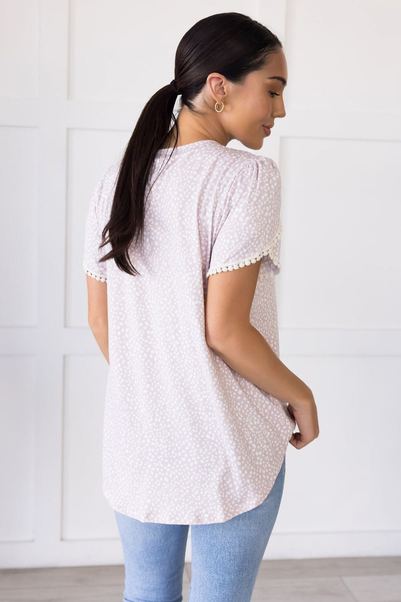 The Best Days Ahead Modest Blouse is a must have for summer! This gorgeous blouse features the softest material ever, darling tulip crochet lace lined sleeves and the most adorable abstract dot print. Hurry, these will go quick!
