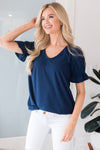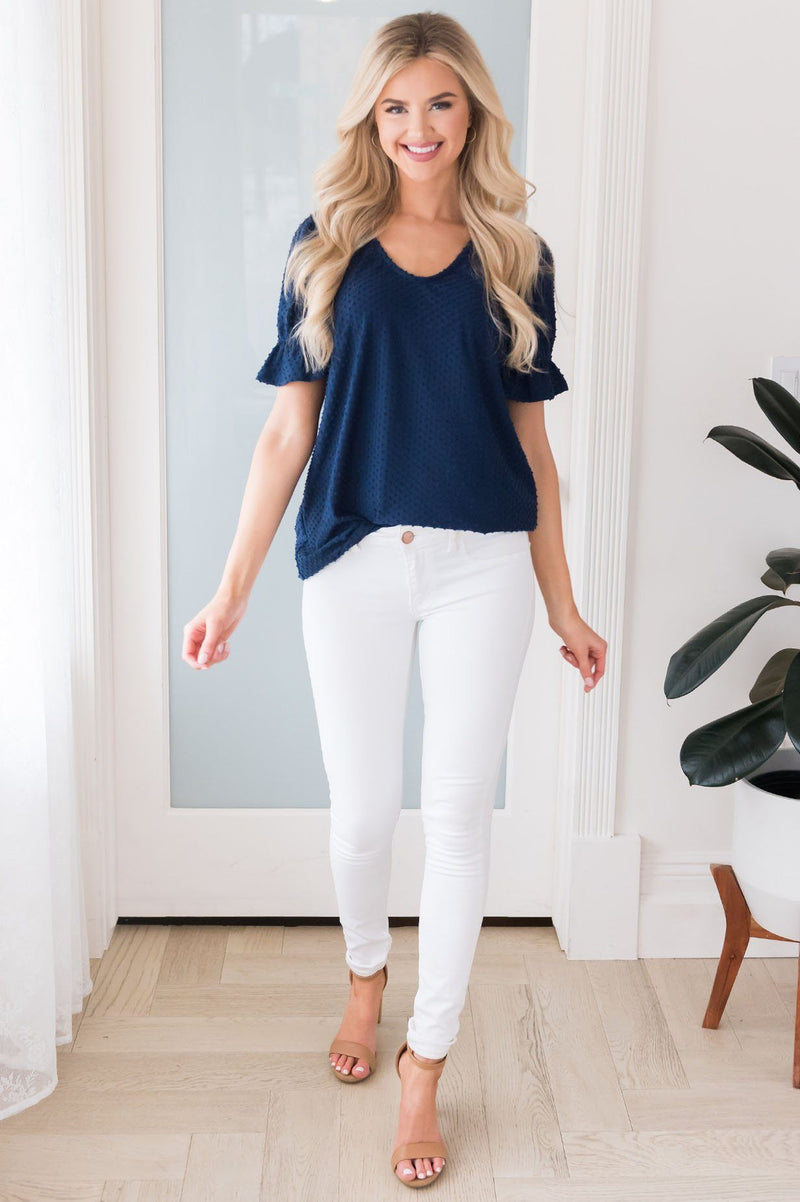 The Big Things Ahead top is an oh so darling swiss dot top! We are obsessed with the delicate ivory swiss dot material, short ruffle puff sleeves, and the beautiful feminine peplum fit!