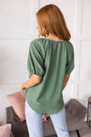 The new Blessed Are The Humble blouse is so stylish for all! Features the perfect match for everything dark sage color, short puff sleeves and a classy faux button front. Gets yours today because this color in everything goes quick!