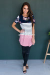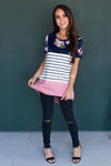 To say we are in love with this top would be an understatement! This color block tee is seriously adorable! It features a round neckline, short sleeves, and the comfiest and softest material EVER. Run, don't walk, it wont be in stock long ladies!