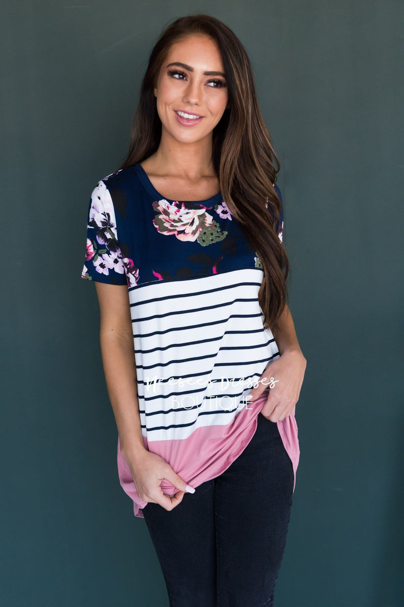 Blissful Modest Color Block Top