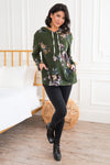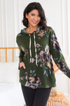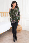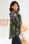 Say hello to this gorgeous hoodie! Simple yet stunning, what could make this top any better?! This hoodie has the most amazing features, such as the beautiful olive green color, pretty plum and blue floral throughout, buttery soft material, and long sleeves! Get yours soon!