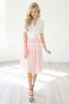 This skirt is oh-so-beautiful, twirl into Spring and Summer in this refreshingly lovely skirt! Blush Pink chiffon skirt is fully lined with back elastic waist and slips on.