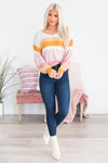 We simply can not stop obsessing over how adorable our new Bonfire Nights sweater is! We adore the mint, ivory, rust, and pink stripes, super soft material, long sleeves, and v-neckline! Move fast, these beauties won't last!