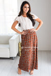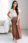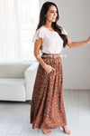 Spice up your date night attire with this adorable maxi length skirt! Featuring an elastic waistband, & the cutest paisley detailing ever, this skirt will be turning heads for sure! This skirt also comes fully lined, which is always an added plus! Make sure you get it before it is all gone!