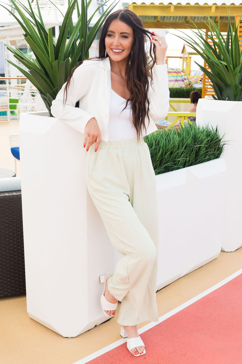 Our new Palazzo pants are the latest trend you will wanna get your hands on! These pants can be dressed up with a nice pair of heels or dressed down with a simple flat sandal. Either way these are show stoppers! These pants feature an elastic waist band for comfort, small leg slit, wide pant leg and of course our favorite feature POCKETS! You do not want to miss out on your next pair of classy go-to pants! Gets yours today.