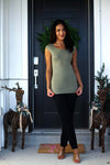 This is the perfect go-to top, and believe us when we say, this top is incredibly soft! This gorgeous moss colored top features a round neckline and he cutest cap sleeve, perfect for pairing with anything! Especially our adorable overall dresses!