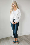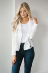 Our new Charming Moto Jacket is the perfect addition to any spring wardrobe! It's the perfect light weight jacket for those chilly spring days! This jacket features asymmetric, zipper front jacket with raw edges and front zipper pockets!