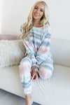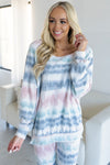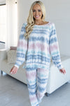 You can do anything in a lounge set that is this comfy and cozy! If you love relaxing on the weekends, now you can do it in style! This set features a round neckline, gorgeous tie dye color combo and long sleeves in a darling light weight brushed fleece fabric. The adorably cozy pants feature an elastic waistband. We know when something this adorable and cozy comes around it doesn't last long!
