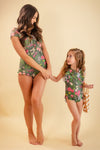This lovely cherry blossom print is giving us summertime vibes! The feminine ruffled tie neckline with ruffled cap sleeves, comfortable fit and print had us at hello! Grab the little version and start twinning with your mini today!