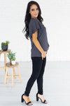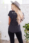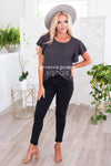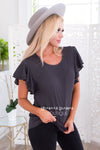 This delicate classy black blouse is perfect day or night! Featuring lovely flowy chiffon material, perfect for any outfit! Also features a modest round neckline and the most gorgeous double flutter sleeves, so feminine! This blouse is unlined. Get yours today before they are gone!