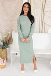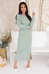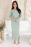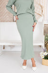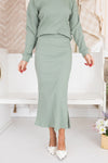 This darling ribbed sweater skirt is perfect for all! Featuring a gorgeous bay leaf color, it creates the softest feminine touch and pairs well with everything! Get yours today and be sure to grab the Classy And Cozy Modest Sweater for the perfect mix and match outfit!