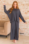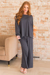 You can do anything in lounge pants that are this comfy and cozy! We all love relaxing on the weekends, now you can do it in style! These pants feature an classy deep charcoal color, cozy soft ribbed material and flowy fit. Pair this with our adorably cozy up lounge top for the perfect cozy combination!