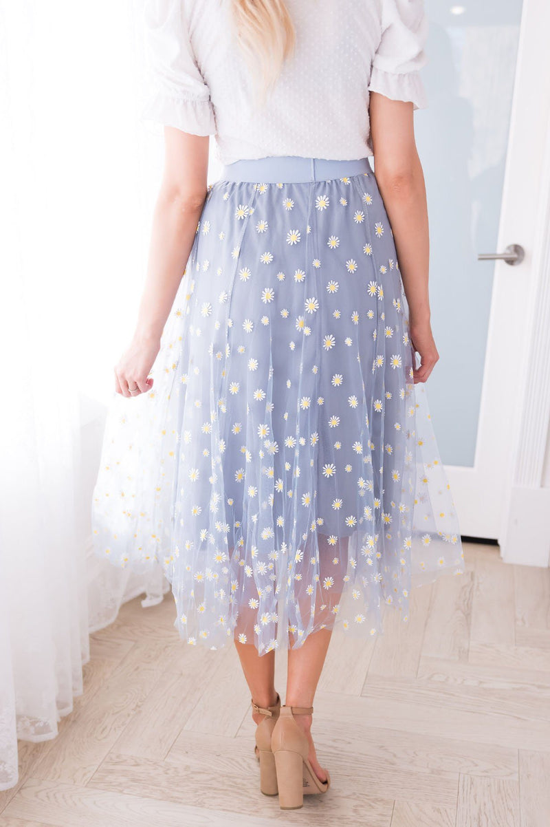 The Crazy Daisy Tulle skirt is making us crazy for this classy modest skirt! We are loving the flowy tulle fabric, comfy fit elastic waistband and gorgeous ditzy daisy print! Get yours today