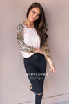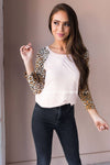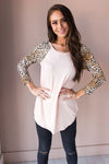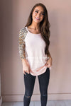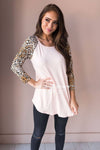 Grab this fun super soft stretchy top and say hello to comfort & style! This blush and leopard print top features, an adorable baseball tee style, long leopard print sleeves, a rounded neckline, and a super soft stretch fit. Perfect for pairing with everything!