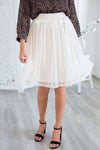 This new darling skirt is sure to steal your heart! We are obsessing over this polka dotted tulle, it adds the perfect amount of flair to all your outfits! Pink skirt features a tulle polka dot overlay, fitter waist band, aline fit and is fully lined.