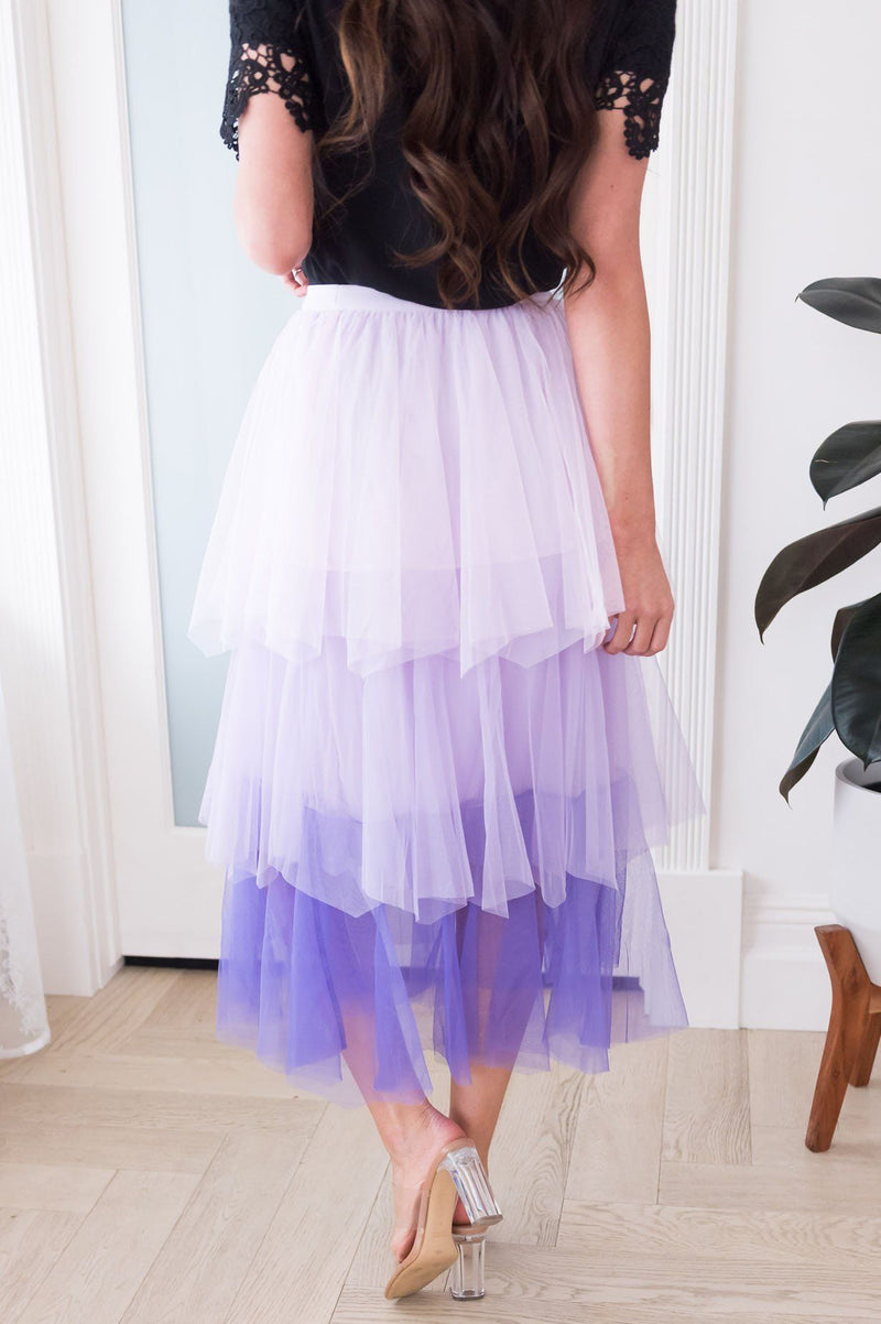 The Create Your Happiness Skirt is here and we are overjoyed! The striking layer design and fabulous colors will have you dreaming about this item! The flowy tulle fabric and modest fit is stunning!