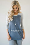 It doesn't get any cuter than this top, it is absolutely perfect for casual days. Dusty blue top features cute geo print baseball style sleeves.