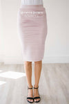 Cute as can be, simple, stretchy and so comfy! Our Scrunch Pencil Skirts are a wardrobe must in every color! Fits to a size 9.