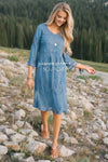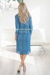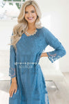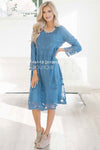 Meet your new favorite dress and our best ever selling dress! Do not wait to order yours, this dress will sell out instantly! Our Day Dreamer dress is fully lined, has 3/4 length sleeves, a relaxed fit and the overlay is this beautiful cornflower blue crochet lace.