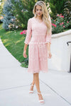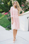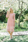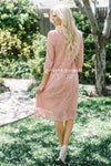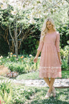 Meet your new favorite dress! Our Day Dreamer dress is fully lined, has 3/4 length sleeves, a relaxed fit and the overlay is this beautiful dusty mauve crochet lace.