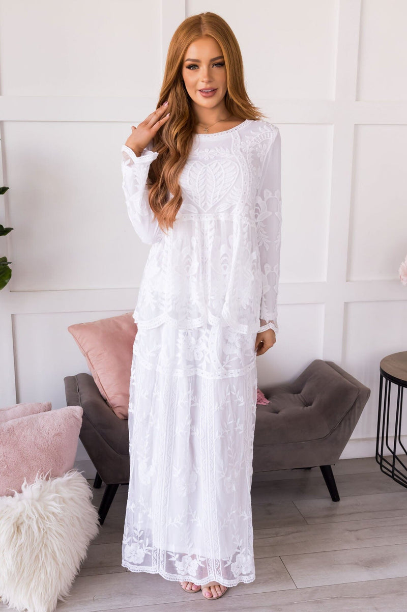 The most gorgeous delicate lace skirt just twirled it's way into our hearts! Featuring an elastic waistline and flowy maxi length. Pairs perfectly with our Delicate Darling Lace Blouse.