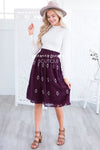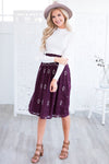 This dazzling textured skirt is such a fun addition to your fall/winter closet! The perfect shade of plum paired with the contrasting white diamond print is absolutely stunning! Featuring an elastic fitted ruffles waist band and is completely lined.