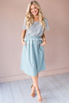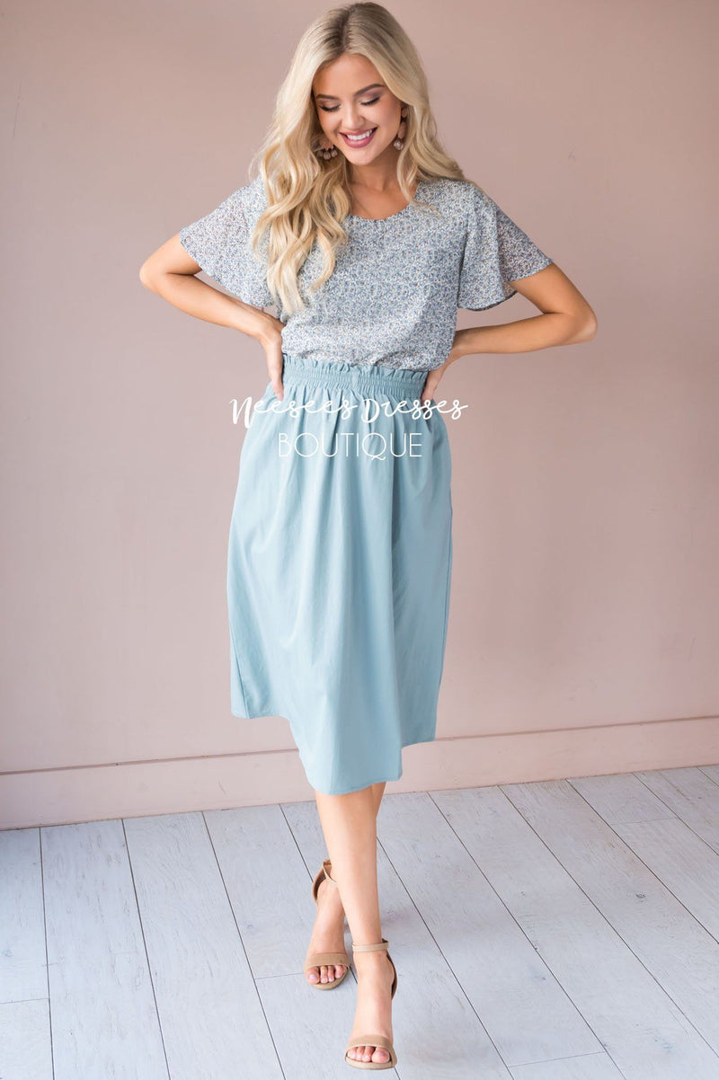 This delicate blouse is perfect day or night! Featuring gorgeous flowy fabric and a lovely floral print, it creates the softest feminine touch! White blouse with navy and mustard floral print features a rounded neckline, half length flutter sleeves, and is fully lined.