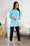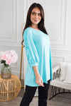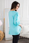 The most darling top is here and needs to be a part of your wardrobe! Featuring the perfect true to size fit, modest round neckline, quarter length ruffled sleeves and gorgeous aqua color. Get yours today before it's gone and you regret it!