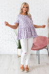 The Easily Spotted Modest Blouse is a must have for summer! This gorgeous blouse features a lovely light lilac color, the softest material ever, large ivory abstract dot print, short ruffe hem sleeves, and a beautiful tiered bodice! This gorgeous blouse will be a great addition to your summer wardrobe!
